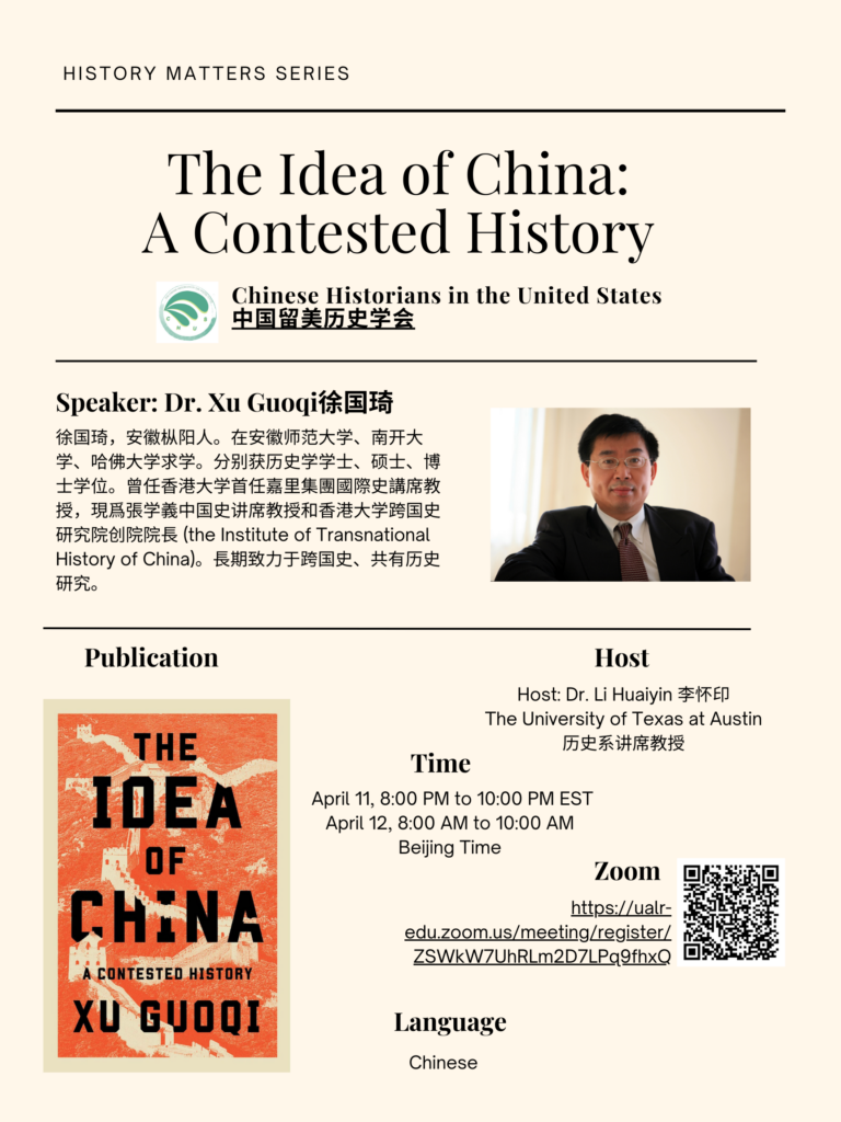 演讲题目及简介:本讲座基于同名新书The Idea of China: A Contested History (Harvard University Press, 2026). It examines two fundamental questions: What counts as China, and who counts as Chinese? Tracing the idea of China across time, Professor Xu argues that Chinese identity has never been fixed but has been continuously shaped through interactions with neighboring societies, overseas communities, and internal debates within the Chinese-speaking world. By highlighting the transnational and historical construction of “Chineseness,” the talk invites us to rethink China not as a timeless civilization or a fixed political entity, but as an evolving historical process.